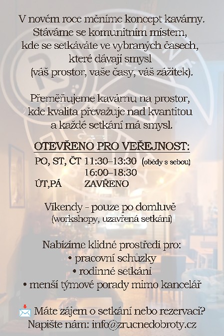 že s kavárnou ZRUČné dobroty ke dni 22.9.2024 ve Zruči nad Sázavou končíme.